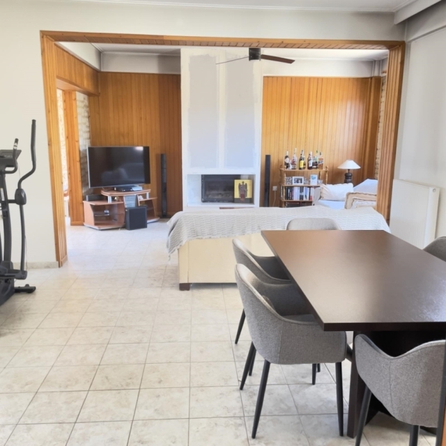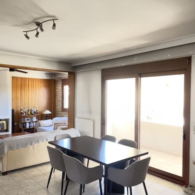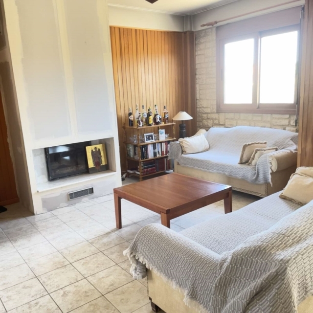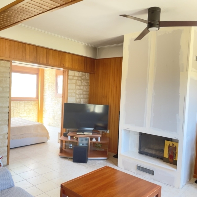 Στον 1ο Όροφο συναντάμε μια μεγάλη τραπεζαρία, κουζίνα, σαλόνι, 1 λουτρό & 1 Υ/Δ.