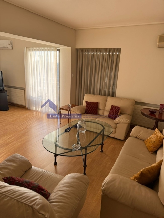 Αποτελείται από ευρύχωρο καθιστικό, μοντέρνα κουζίνα, δύο υπνοδωμάτια (το ένα master), δύο μπάνια και WC επισκεπτών. Διαθέτει κεντρική θέρμανση πετρελαίου, κλιματισμό σε όλους τους χώρους, αλουμίνια με διπλά τζάμια, δρύινα δάπεδα, πόρτες και κλειδαριές ασφαλείας, ανελκυστήρα, ηλεκτρικές συσκευές, τέντες και πολύ μεγάλες βεράντες εμπρός και πίσω.