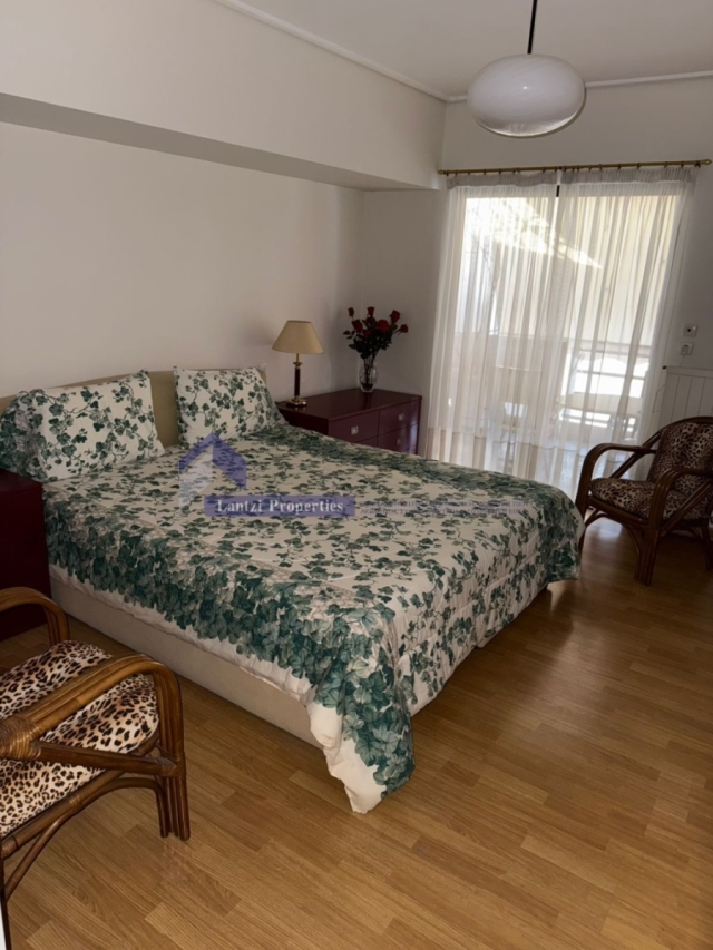 Πρόκειται για γωνιακό, διαμπερές και ιδιαίτερα φωτεινό διαμέρισμα, με δύο ανεξάρτητες εισόδους, καθώς προέρχεται από ενοποίηση δύο κατοικιών — ιδανικό και για διπλή χρήση ή διαχωρισμό. Περιβάλλεται από κήπο με δέντρα και προσφέρεται και επιπλωμένο.