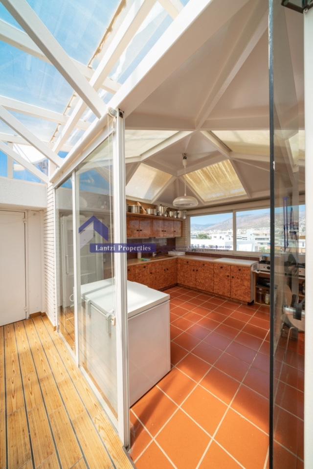 Κύριο Διαμέρισμα | 5ος Όροφος | 263,50 τ.μ.Πλήρως ανακαινισμένο (2003 & 2015), ευρύχωρο και πολυτελές.▪️ Μεγάλο σαλόνι με τζάκι & τραπεζαρία▪️ Πλήρως εξοπλισμένη κουζίνα, πλυσταριό▪️ 4 υπνοδωμάτια (1 master με en-suite μπάνιο)▪️ 2 μπάνια, 1 WC▪️ Δωμάτιο υπηρεσίας, αποθηκευτικοί χώροι▪️ Δρύινα πατώματα, περιμετρικά μπαλκόνια▪️ Αυτόνομη θέρμανση & σύστημα fan coil▪️ Εσωτερικός ανελκυστήρας με πρόσβαση στο δώμα