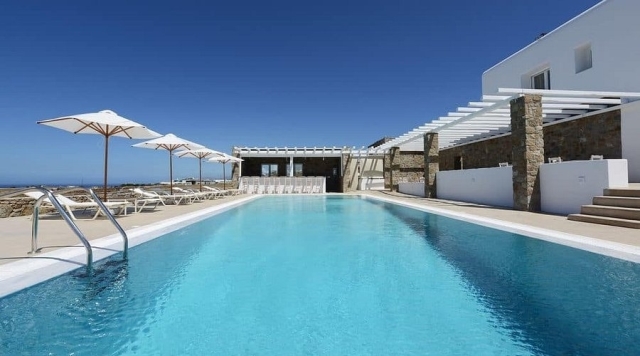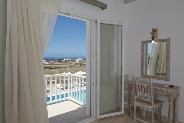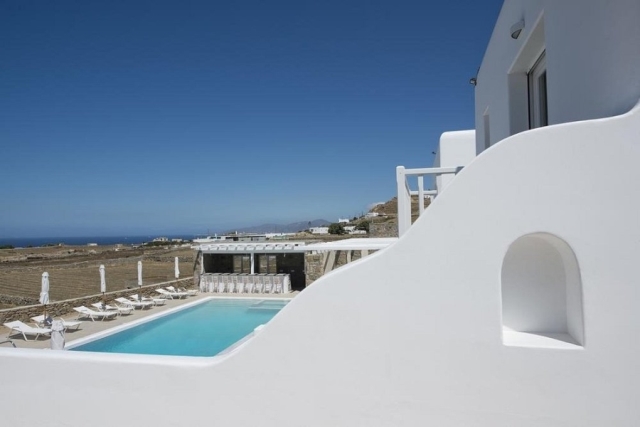 EXCELLENT hotel in MYKONOS - HAIA SOFIA, 1.5 km from the port & 1.6 km from the center. E 850 sq m on a plot of approximately 4 acres. the rooms have a private bathroom, air conditioning with all modern specifications and SEA view. There are some of them on the ground floor and the rest are suites on the 1st floor. The accommodation can also function as a villa for families and friends enjoying all the spaces. It also has a swimming pool (16 X 6 X 3) and a pool bar. There is a private parking.